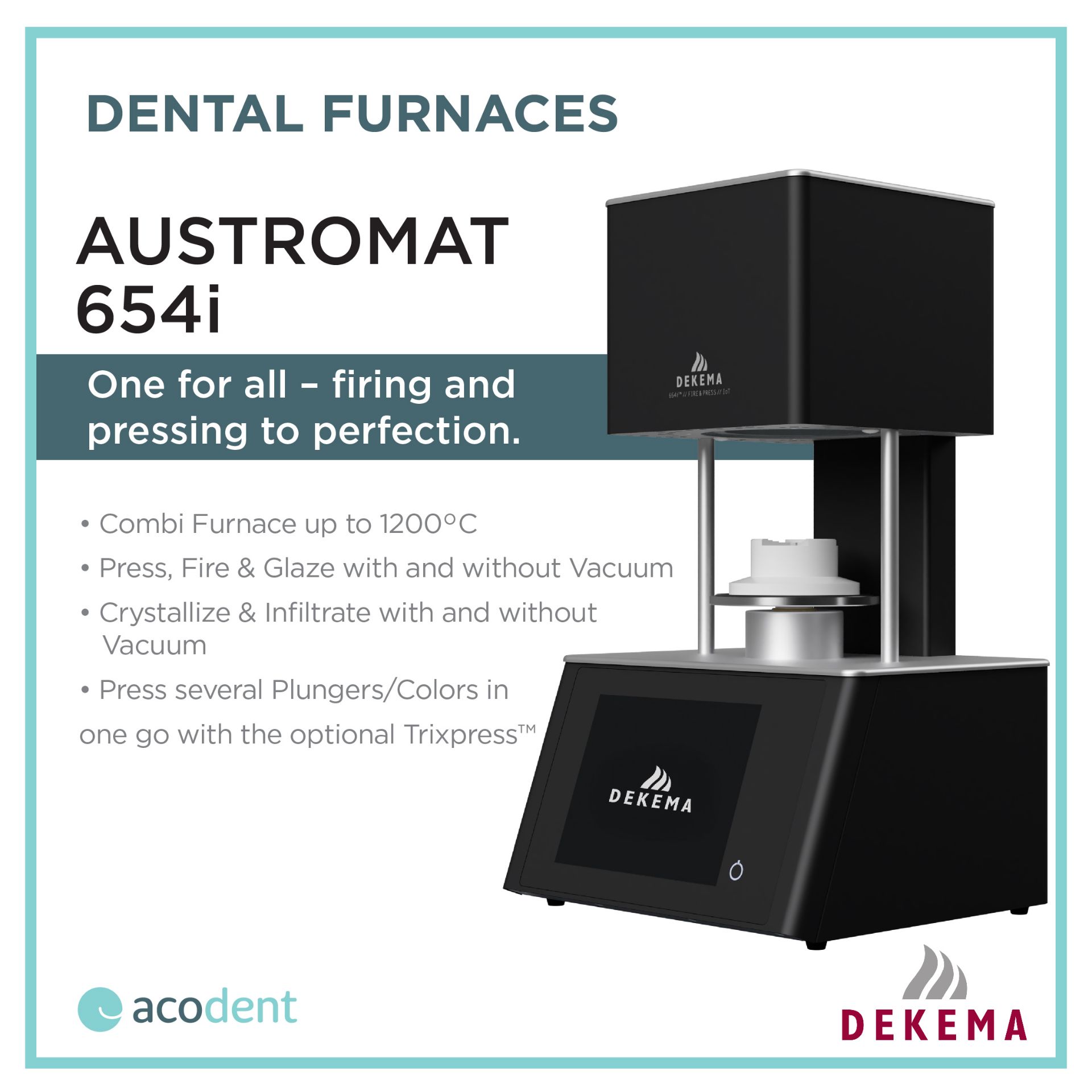 With vacuum pump. Specific upward pressing system with controlled electromechanical feed. For pressing with a punch. For firing, glazing, crystallising and infiltrating, both with or without vacuum. With 10.4 inch colour touchscreen. Housing made of aluminium, black.