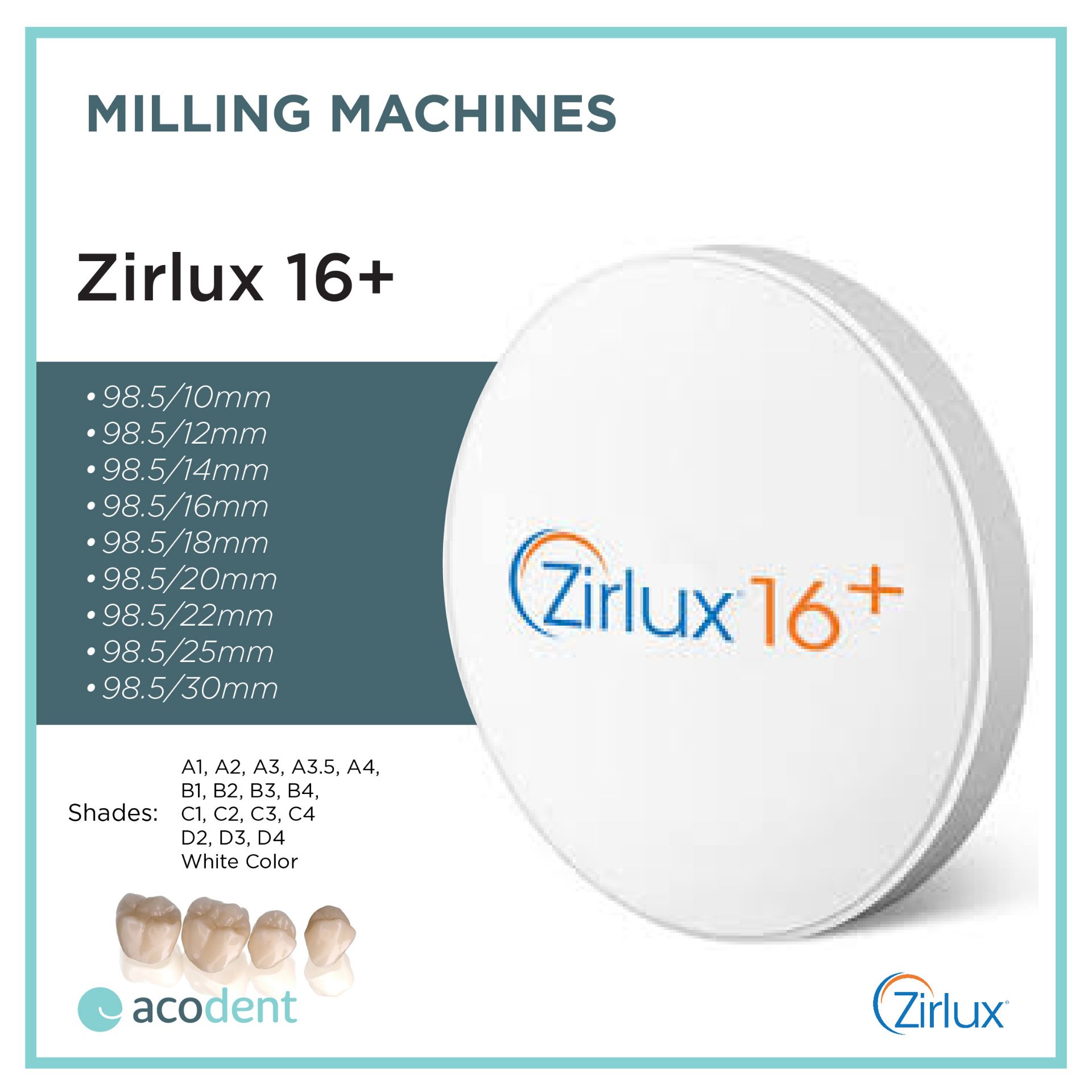 Available in both pre-shaded and white discs, Zirlux 16+ offers a complete zirconia solution by combining unparalleled translucency and exceptional flexural strength to compliment the skills of a dental technician. Unique manufacturing processes where powders and colors are blended together create this natural looking translucent alternative to glass ceramics without sacrificing strength or durability.